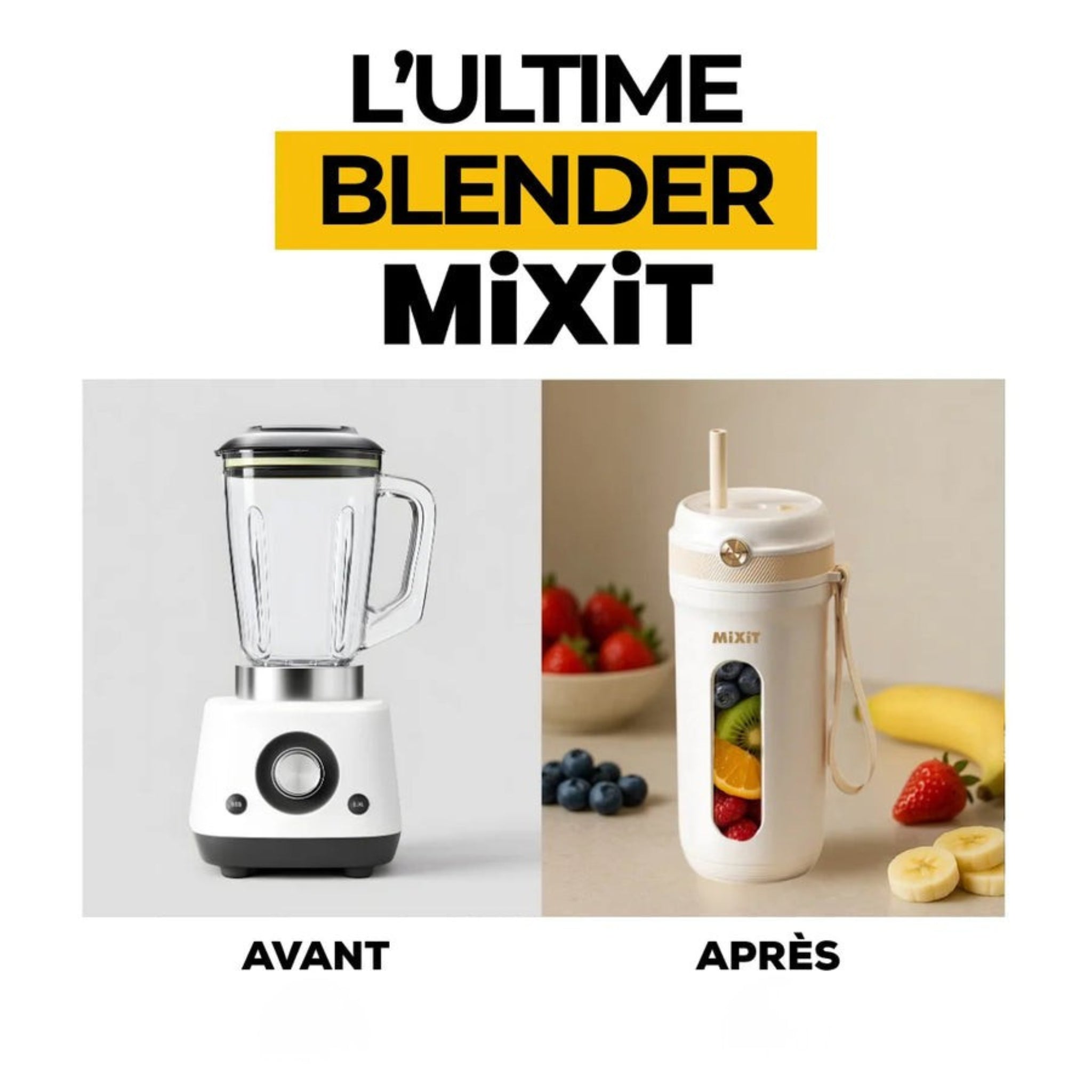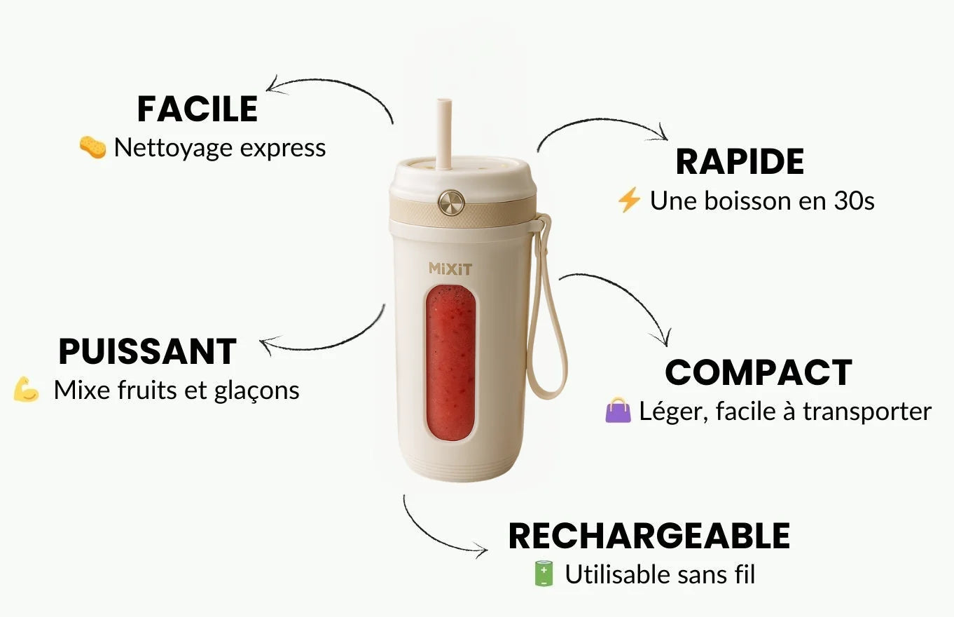 Absolument ! Mixit est pensĂ© pour mixer ET boire dans le mĂȘme contenant. Moins de vaisselle, plus de praticitĂ©.
